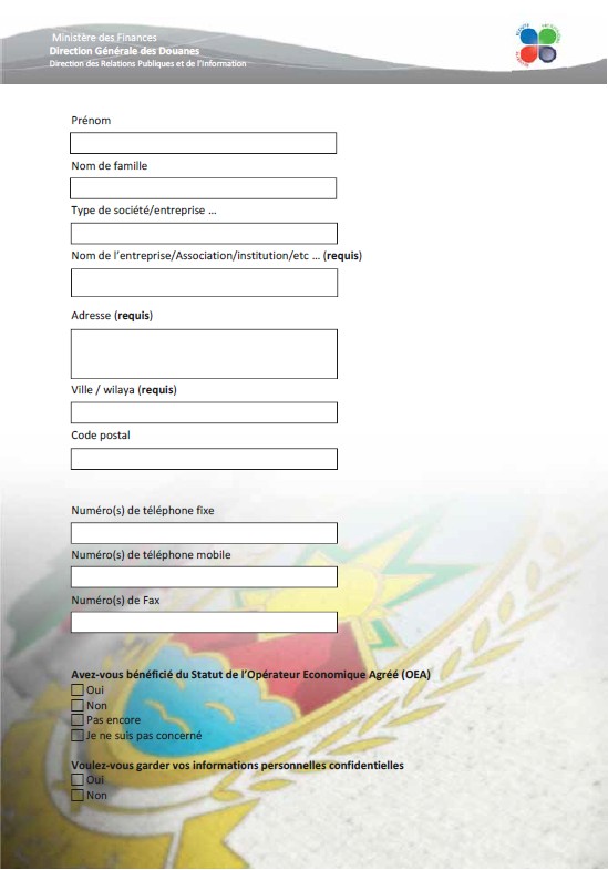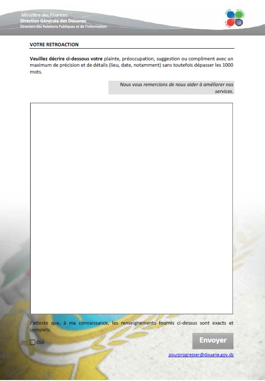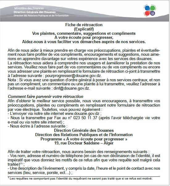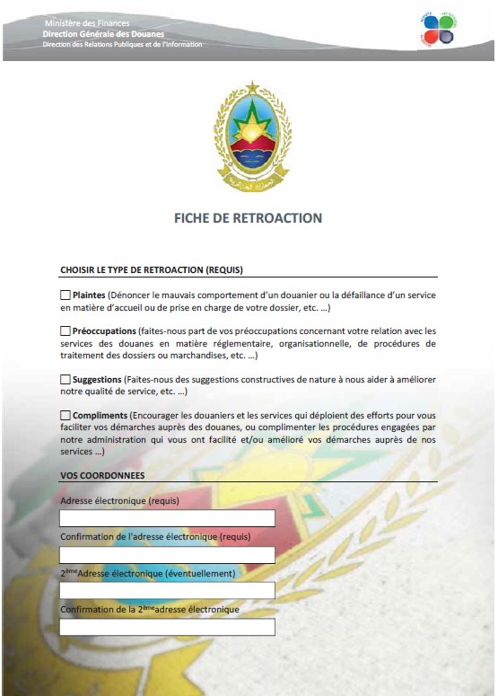 La première étape de ce programme est la « Fiche de rétroaction » à télécharger sur le site web des douanes.