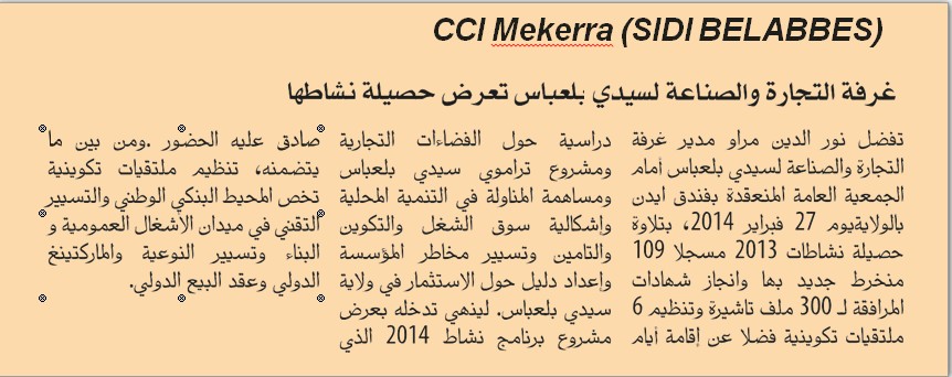 Activités de la CACI CCI Mekerra (SIDI BELABBES)/ Exposé du bilan d'activités admin 12 années ago 44 Views admin