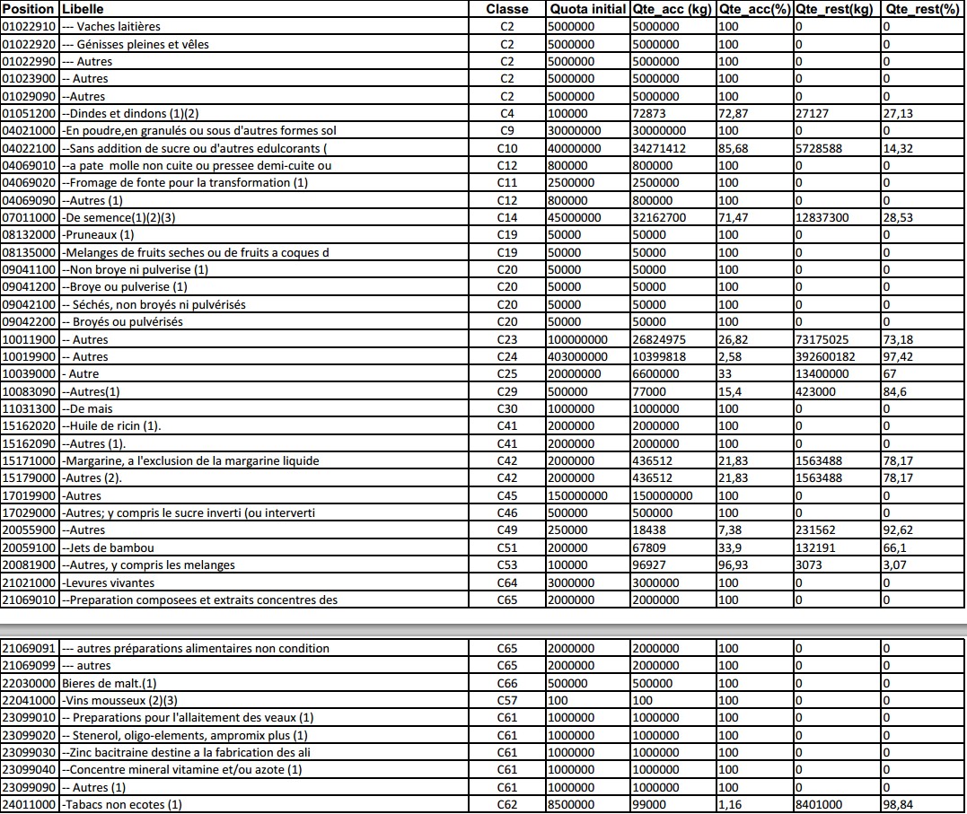 Commerce extérieur Situation du contingent tarifaire admin 11 années ago 41 Views ETAT QUANTITATIF DES IMPORTATIONS LIEES AU CONTINGENT TARIFAIRE: Situation au : 01/07/2014 admin