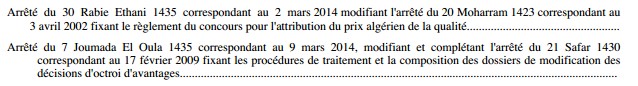 Ont paru au JORA n° 49 du 20 août 2014 et dans le n° 51 du 31 août 2014, les lois, décrets et arrêtés suivants: